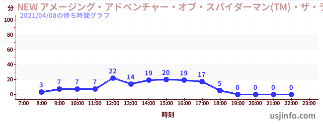 • NEW アメージング・アドベンチャー・オブ・スパイダーマン(TM)・ザ・ライド 4K3D$B$N(B2021年04月08日の待ち時間