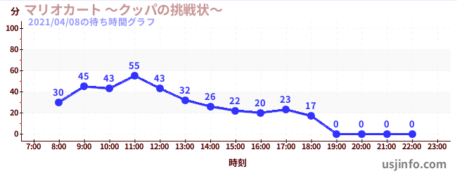 • マリオカート ~クッパの挑戦状~$B$N(B2021年04月08日の待ち時間