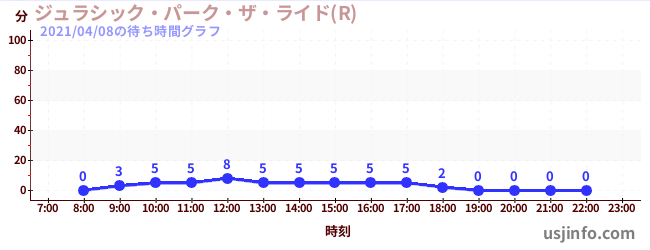 • ジュラシック・パーク・ザ・ライド(R)$B$N(B2021年04月08日の待ち時間