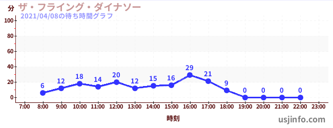 • ザ・フライング・ダイナソー$B$N(B2021年04月08日の待ち時間