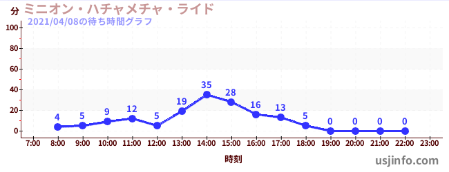 • ミニオン・ハチャメチャ・ライド$B$N(B2021年04月08日の待ち時間