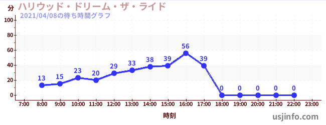 • ハリウッド・ドリーム・ザ・ライド$B$N(B2021年04月08日の待ち時間