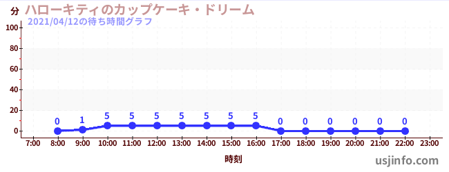 • ハローキティのカップケーキ・ドリーム$B$N(B2021年04月12日の待ち時間