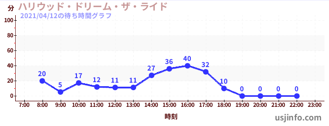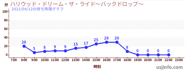 • ハリウッド・ドリーム・ザ・ライド〜バックドロップ〜$B$N(B2021年04月12日の待ち時間