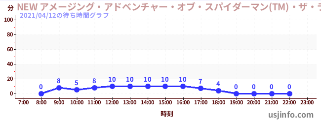 • NEW アメージング・アドベンチャー・オブ・スパイダーマン(TM)・ザ・ライド 4K3D$B$N(B2021年04月12日の待ち時間