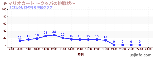 • マリオカート ~クッパの挑戦状~$B$N(B2021年04月12日の待ち時間