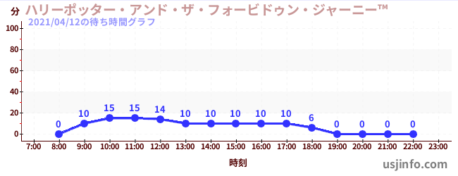 • ハリーポッター・アンド・ザ・フォービドゥン・ジャーニー™$B$N(B2021年04月12日の待ち時間