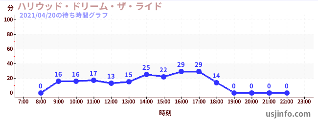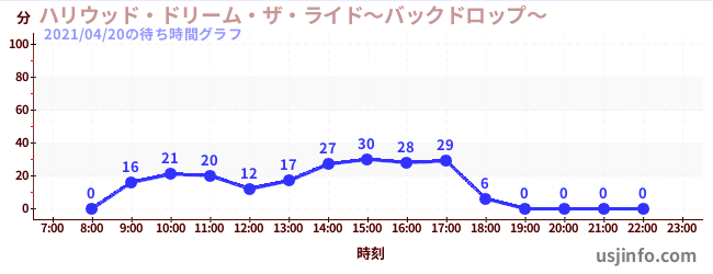• ハリウッド・ドリーム・ザ・ライド〜バックドロップ〜$B$N(B2021年04月20日の待ち時間