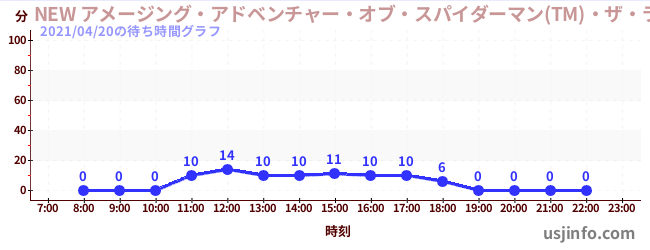 • NEW アメージング・アドベンチャー・オブ・スパイダーマン(TM)・ザ・ライド 4K3D$B$N(B2021年04月20日の待ち時間