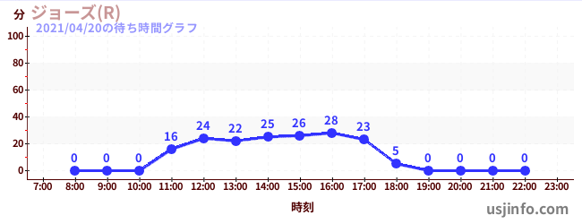 • ジョーズ(R)$B$N(B2021年04月20日の待ち時間