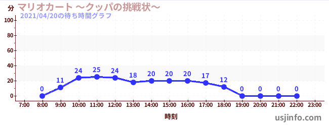 • マリオカート ~クッパの挑戦状~$B$N(B2021年04月20日の待ち時間