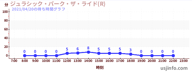 • ジュラシック・パーク・ザ・ライド(R)$B$N(B2021年04月20日の待ち時間