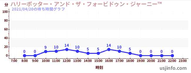 • ハリーポッター・アンド・ザ・フォービドゥン・ジャーニー™$B$N(B2021年04月20日の待ち時間