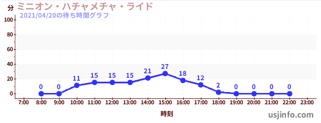 • ミニオン・ハチャメチャ・ライド$B$N(B2021年04月20日の待ち時間