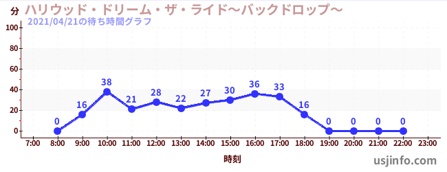 • ハリウッド・ドリーム・ザ・ライド〜バックドロップ〜$B$N(B2021年04月21日の待ち時間