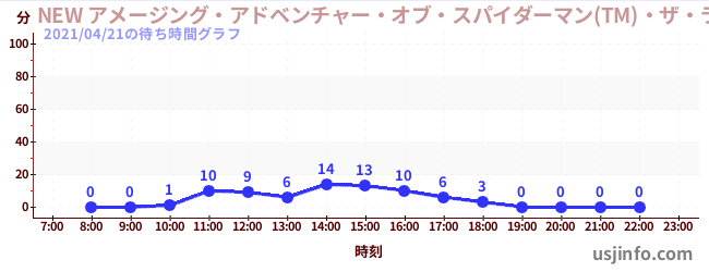 • NEW アメージング・アドベンチャー・オブ・スパイダーマン(TM)・ザ・ライド 4K3D$B$N(B2021年04月21日の待ち時間