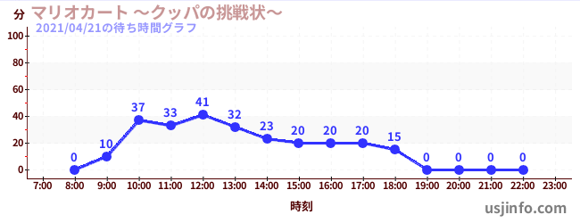 • マリオカート ~クッパの挑戦状~$B$N(B2021年04月21日の待ち時間