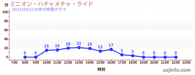 • ミニオン・ハチャメチャ・ライド$B$N(B2021年04月21日の待ち時間
