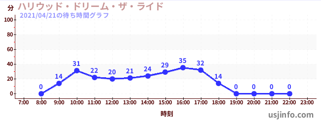 • ハリウッド・ドリーム・ザ・ライド$B$N(B2021年04月21日の待ち時間