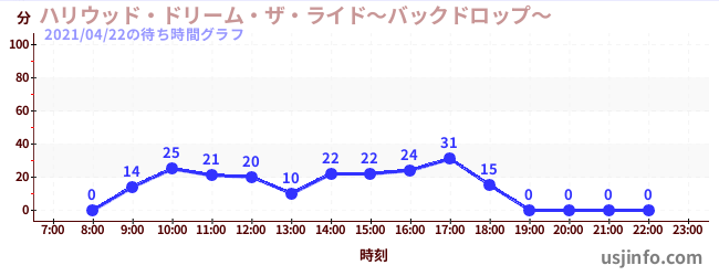 • ハリウッド・ドリーム・ザ・ライド〜バックドロップ〜$B$N(B2021年04月22日の待ち時間
