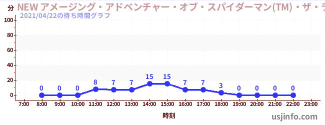 • NEW アメージング・アドベンチャー・オブ・スパイダーマン(TM)・ザ・ライド 4K3D$B$N(B2021年04月22日の待ち時間