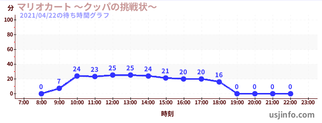 • マリオカート ~クッパの挑戦状~$B$N(B2021年04月22日の待ち時間