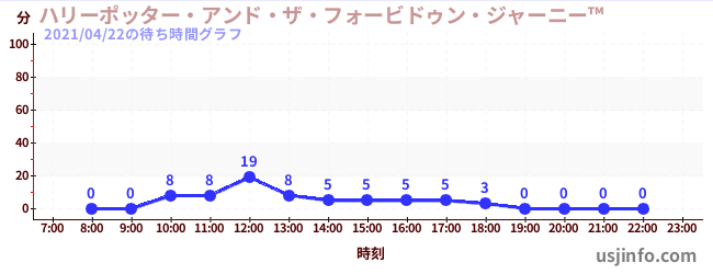 • ハリーポッター・アンド・ザ・フォービドゥン・ジャーニー™$B$N(B2021年04月22日の待ち時間