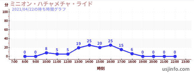 • ミニオン・ハチャメチャ・ライド$B$N(B2021年04月22日の待ち時間