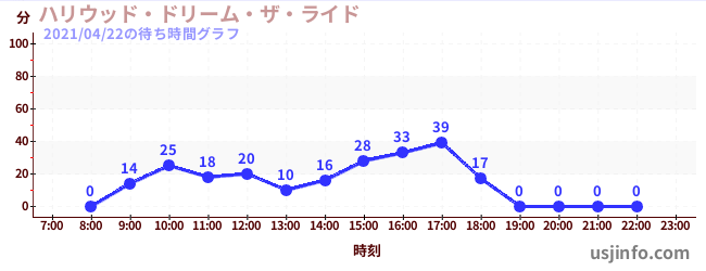 • ハリウッド・ドリーム・ザ・ライド$B$N(B2021年04月22日の待ち時間