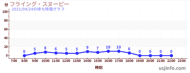• フライング・スヌーピー$B$N(B2021年04月24日の待ち時間