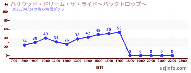 • ハリウッド・ドリーム・ザ・ライド〜バックドロップ〜$B$N(B2021年04月24日の待ち時間