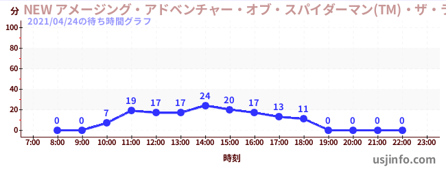 • NEW アメージング・アドベンチャー・オブ・スパイダーマン(TM)・ザ・ライド 4K3D$B$N(B2021年04月24日の待ち時間