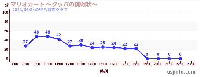 • マリオカート ~クッパの挑戦状~$B$N(B2021年04月24日の待ち時間