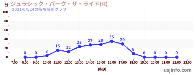 • ジュラシック・パーク・ザ・ライド(R)$B$N(B2021年04月24日の待ち時間