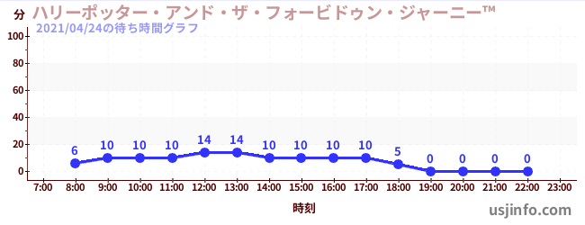 • ハリーポッター・アンド・ザ・フォービドゥン・ジャーニー™$B$N(B2021年04月24日の待ち時間