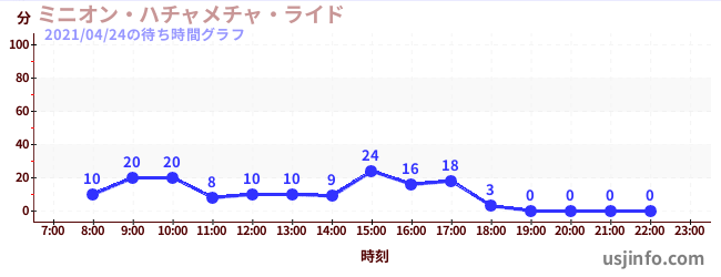 • ミニオン・ハチャメチャ・ライド$B$N(B2021年04月24日の待ち時間