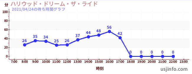 • ハリウッド・ドリーム・ザ・ライド$B$N(B2021年04月24日の待ち時間