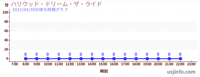 • ハリウッド・ドリーム・ザ・ライド$B$N(B2021年04月30日の待ち時間