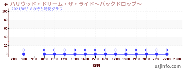• ハリウッド・ドリーム・ザ・ライド〜バックドロップ〜$B$N(B2021年05月18日の待ち時間