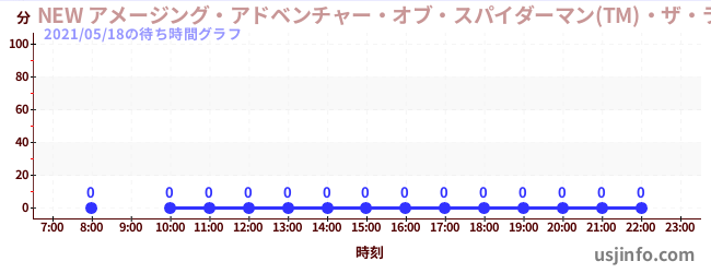 • NEW アメージング・アドベンチャー・オブ・スパイダーマン(TM)・ザ・ライド 4K3D$B$N(B2021年05月18日の待ち時間