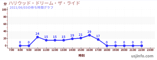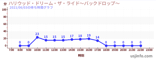 • ハリウッド・ドリーム・ザ・ライド〜バックドロップ〜$B$N(B2021年06月03日の待ち時間
