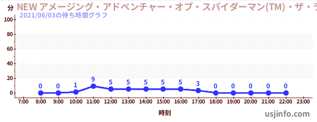 • NEW アメージング・アドベンチャー・オブ・スパイダーマン(TM)・ザ・ライド 4K3D$B$N(B2021年06月03日の待ち時間