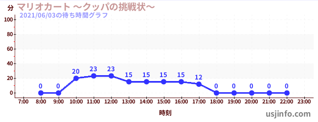 • マリオカート ~クッパの挑戦状~$B$N(B2021年06月03日の待ち時間