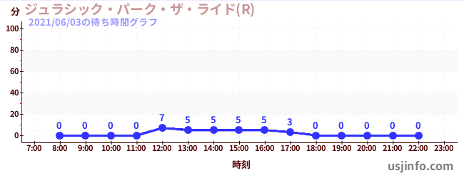 • ジュラシック・パーク・ザ・ライド(R)$B$N(B2021年06月03日の待ち時間