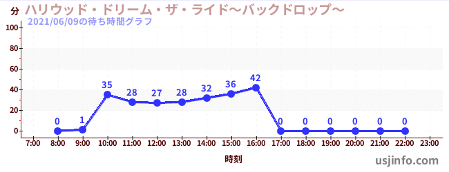 • ハリウッド・ドリーム・ザ・ライド〜バックドロップ〜$B$N(B2021年06月09日の待ち時間