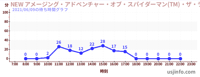 • NEW アメージング・アドベンチャー・オブ・スパイダーマン(TM)・ザ・ライド 4K3D$B$N(B2021年06月09日の待ち時間