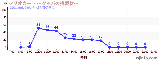 • マリオカート ~クッパの挑戦状~$B$N(B2021年06月09日の待ち時間