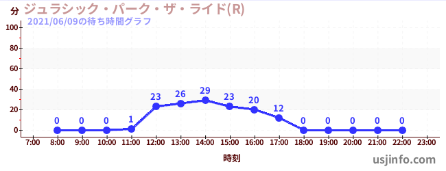 • ジュラシック・パーク・ザ・ライド(R)$B$N(B2021年06月09日の待ち時間