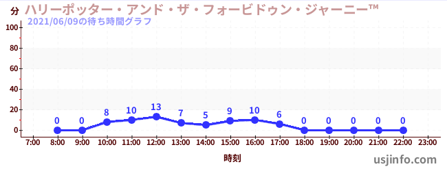 • ハリーポッター・アンド・ザ・フォービドゥン・ジャーニー™$B$N(B2021年06月09日の待ち時間