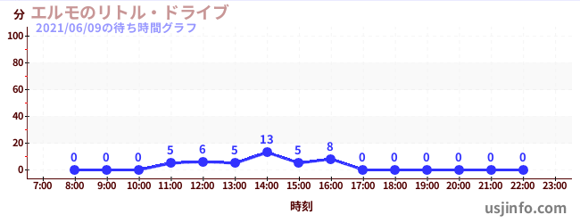 • エルモのリトル・ドライブ$B$N(B2021年06月09日の待ち時間
